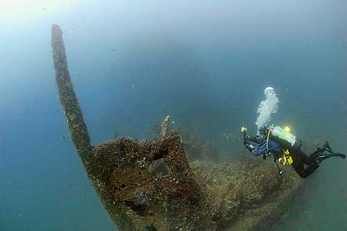Points of Interest: Two boilers, engine, port and starboard bow anchors, rudder, intact bow section | |||
