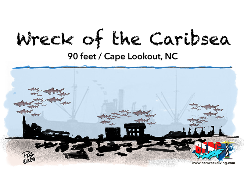 The Caribsea was sailing alone en route from Santiago, Cuba to Norfolk, VA. with a cargo of manganese. At 0200 EWT, she was struck by two torpedoes on the starboard side. The first hit the #2 hold and the second hit amidships. The ship sunk in less than 3 minutes. The crew was unable to launch of the ship's lifeboats and jumped overboard. Only 7 of the 28 member crew managed to cling to wreckage and survive the 10 hours in the water before they were picked up by the freighter SS Norlindo. It is reportd that the U-158 circled the survivors during the night, shining a light in their direction before finally submerging. They were taken towards Cape Henry, VA before being transferred to a Coast Guard boat. Two months later, the Norlindo was sunk near the Dry Tortugas by the U-507.